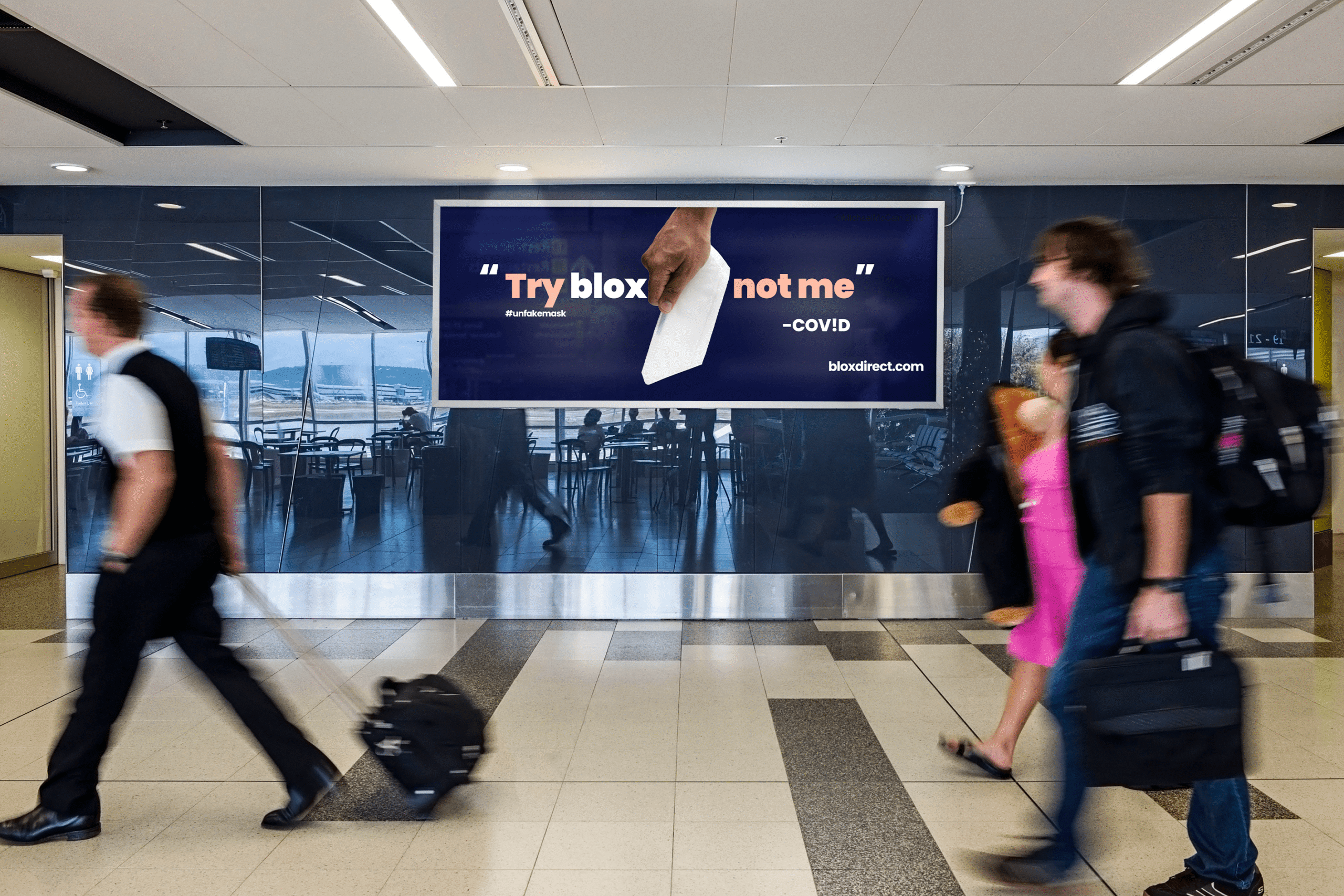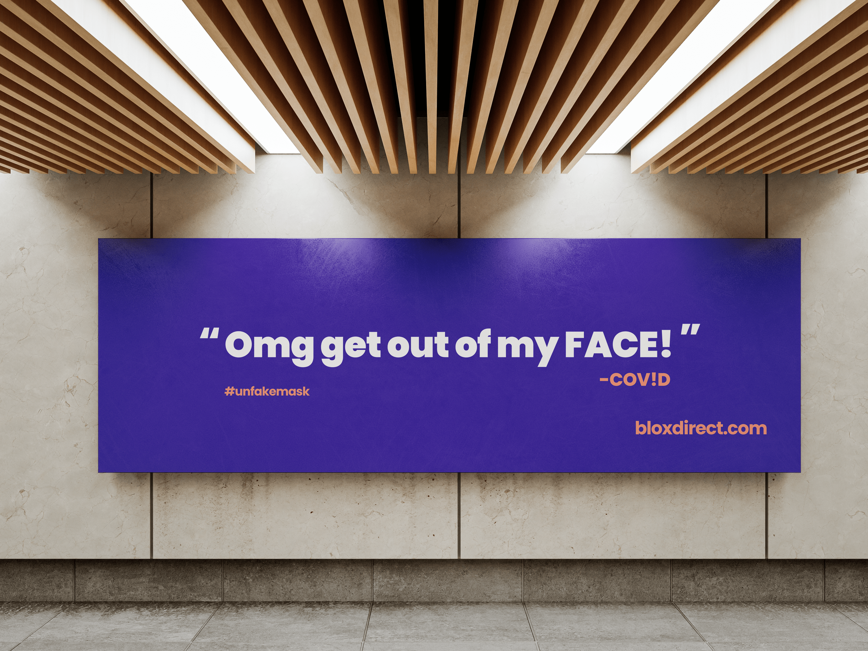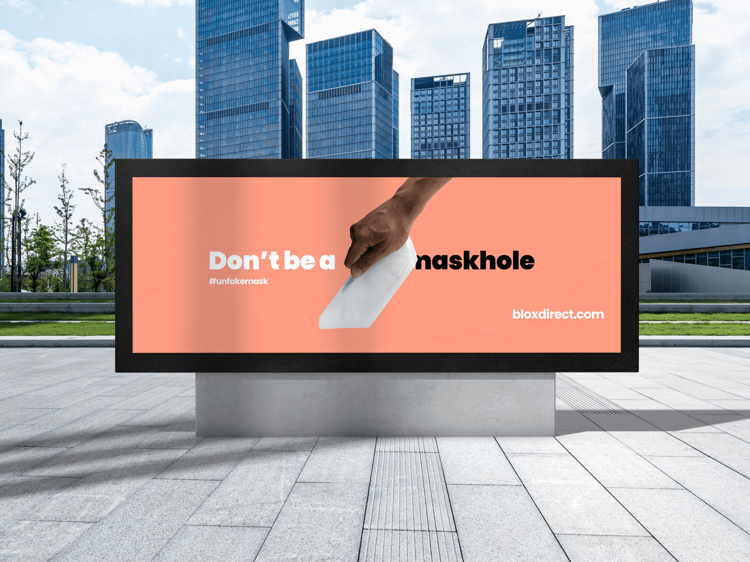 Develop a brand communication strategy and visual system for blox, a US-based manufacturer of face masks, to address the rise of non-certified and counterfeit N95 masks in the market. The goal was to create a fresh, youthful, and relevant identity that resonated with today’s consumers while standing out in a crowded marketplace.